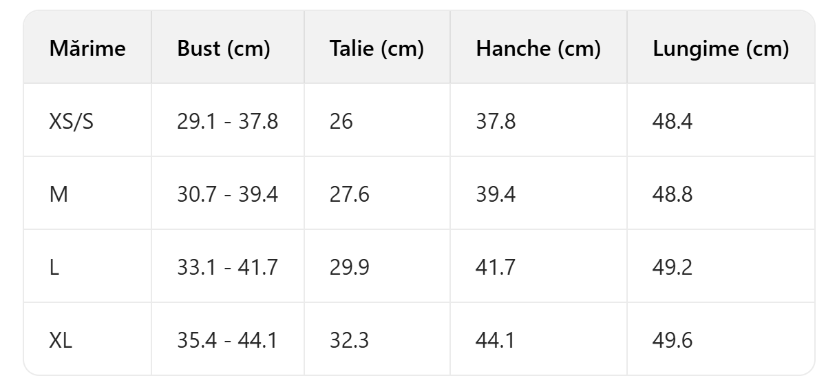 Tabelul Dimensiunilor( INȘI)